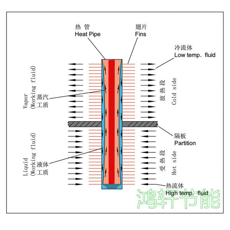 因熱管的熱力循環是在一個封閉的管內實現的,對外界環境而言,熱管自高溫熱源處吸收熱量,在低溫段放出熱量。熱管僅是熱量傳輸的工具,工質則是熱量傳輸的載體,驅動工質循環的動力是管兩端的溫差。